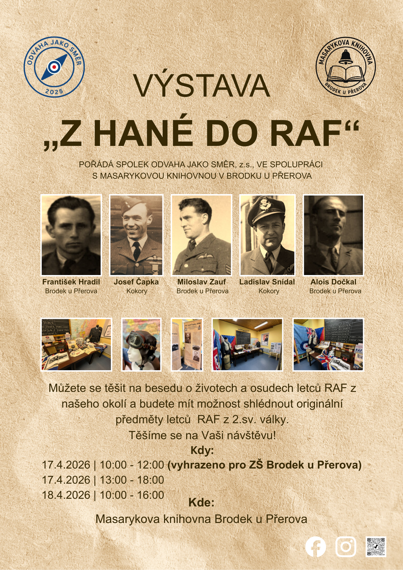 Spolek Odvaha jako směr, z.s. ve spolupráci s Masarykovou knihovnou v Brodku u Přerova pořádá výstavu "Z HANÉ DO RAF".
