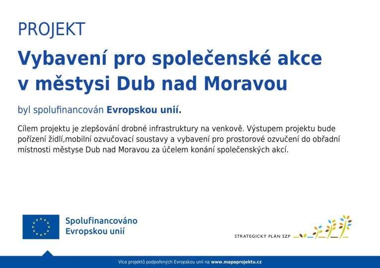 Městys Dub nad Moravou pořídil s podporou MAS Hanácké Království vybavení obřadní místnosti za účelem konání společenských akcí. Vybavení bylo spolufinancováno ze zdrojů EU z programu Strategický plán Společné zemědělské politiky.
